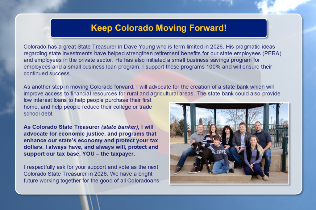 | Hi! As you may know, I’m Jerry DiTullio. I currently serve as Jefferson County Treasurer and Public Trustee, and I’m running to be Colorado’s next State Treasurer in 2026. I grew up in Denver’s Highlands neighborhood in a working middle-class family. My father immigrated from Italy, and as a first-generation American, I understand firsthand the importance of opportunity, fairness, and community. Those values guide me every day in my elected public service and as a former special education teacher. While I disagreed with much of Washington’s H.R. 1 (Big Beautiful Bill), I supported its provision to end federal income tax on overtime and tips. Unfortunately, some in the Colorado legislature — including two of my opponents — voted to continue taxing these earnings at the state level. This policy disproportionately harms first responders, service workers, and families who rely on overtime pay and tips. Colorado should align with H.R. 1 and stop taxing overtime and tips. As State Treasurer, I will advocate for fair taxation that supports workers, seniors, and families across our state. Tax fairness is labor fairness, and I will fight to ensure Colorado taxpayers are treated with respect. Colorado deserves my proactive approach in the State Treasurer’s Office — one grounded in expertise, accountability, and vision. Managing billions in taxpayer funds demands a leader with the right financial background and proven experience. After all, you wouldn’t hire an electrician to fix a plumbing problem. Why settle for anything less when it comes to safeguarding Colorado’s fiscal future? ** Click Here to Watch Video: https://youtube.com/shorts/SZcUmDhgbCE?feature=share ** Click Here for All Videos: https://jerryforcolorado.com/videos/ |